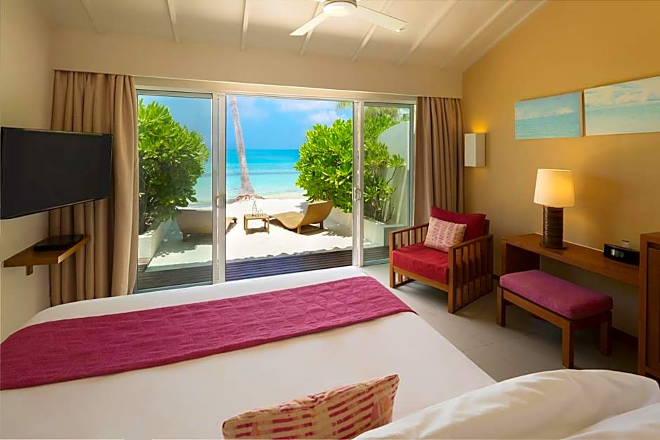 Deluxe Water Villa is 452 square feet and includes a king-size bed 150-183 width.